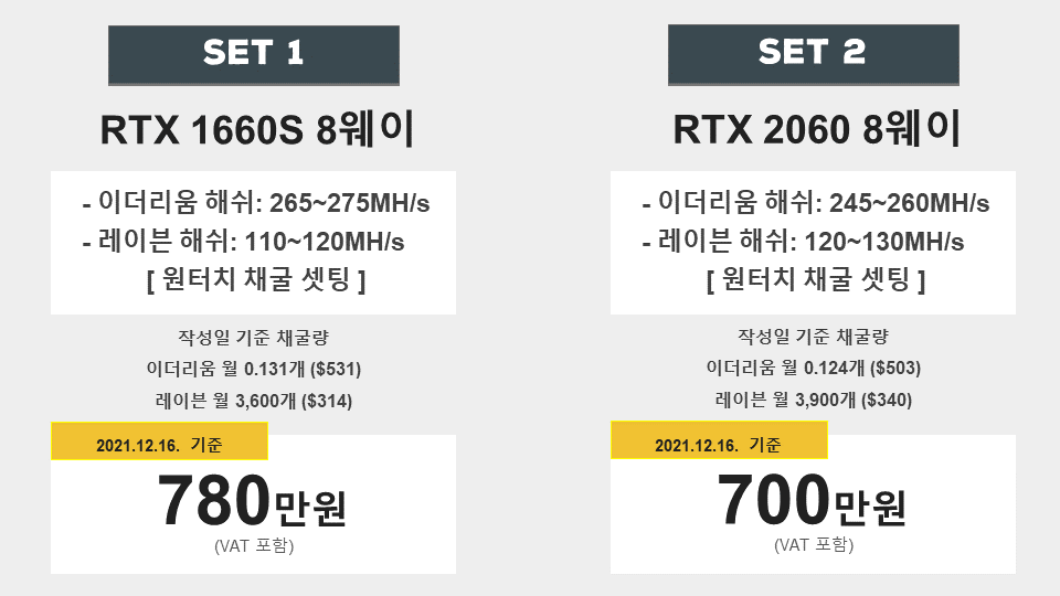 2060Super 8way 모델의 해시값과 채산성을 한 번 알아보도록 하겠습니다.